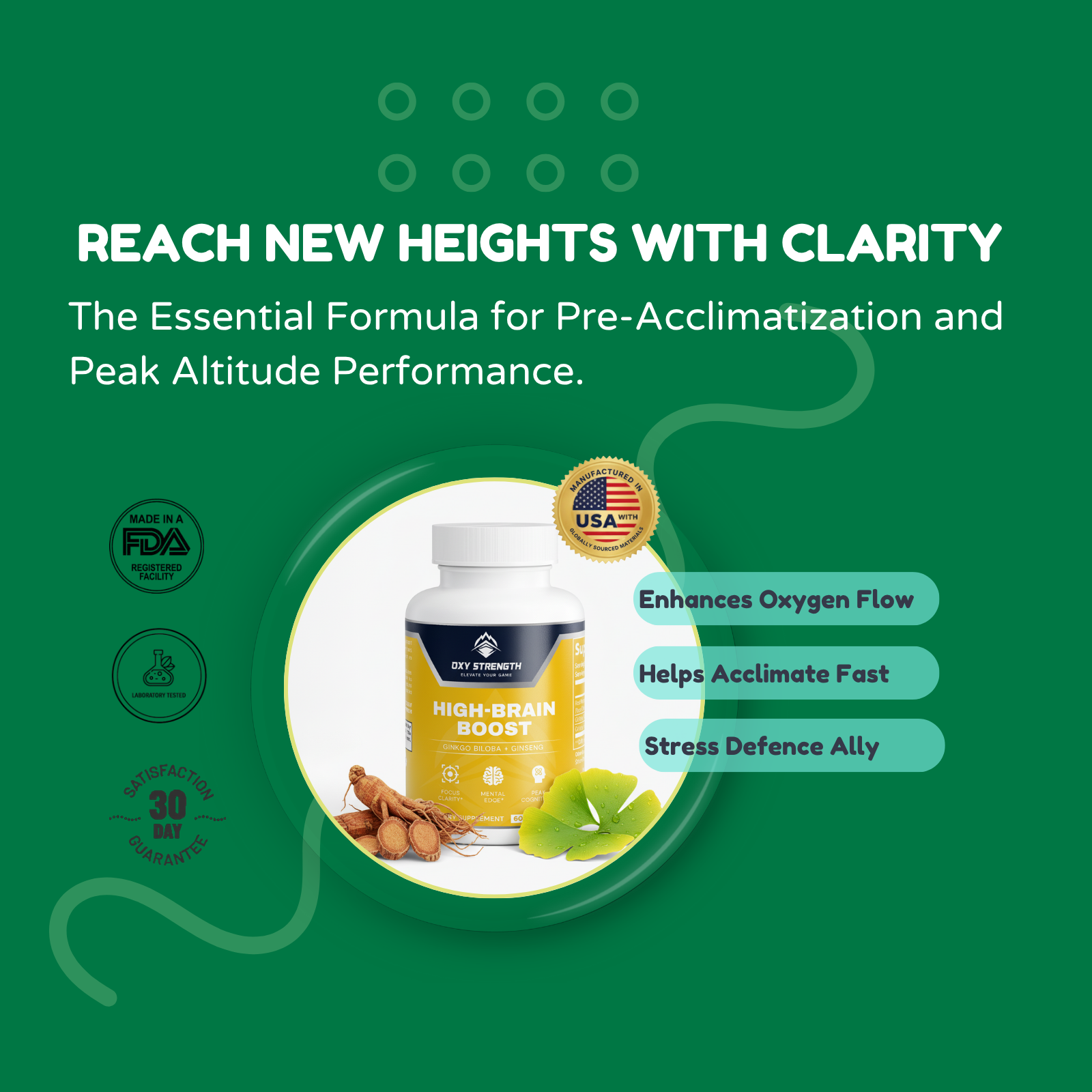 Ginkgo Biloba assists in maintaining focus and sharp decision-making, helping to combat the temporary mental fogginess experienced at elevation